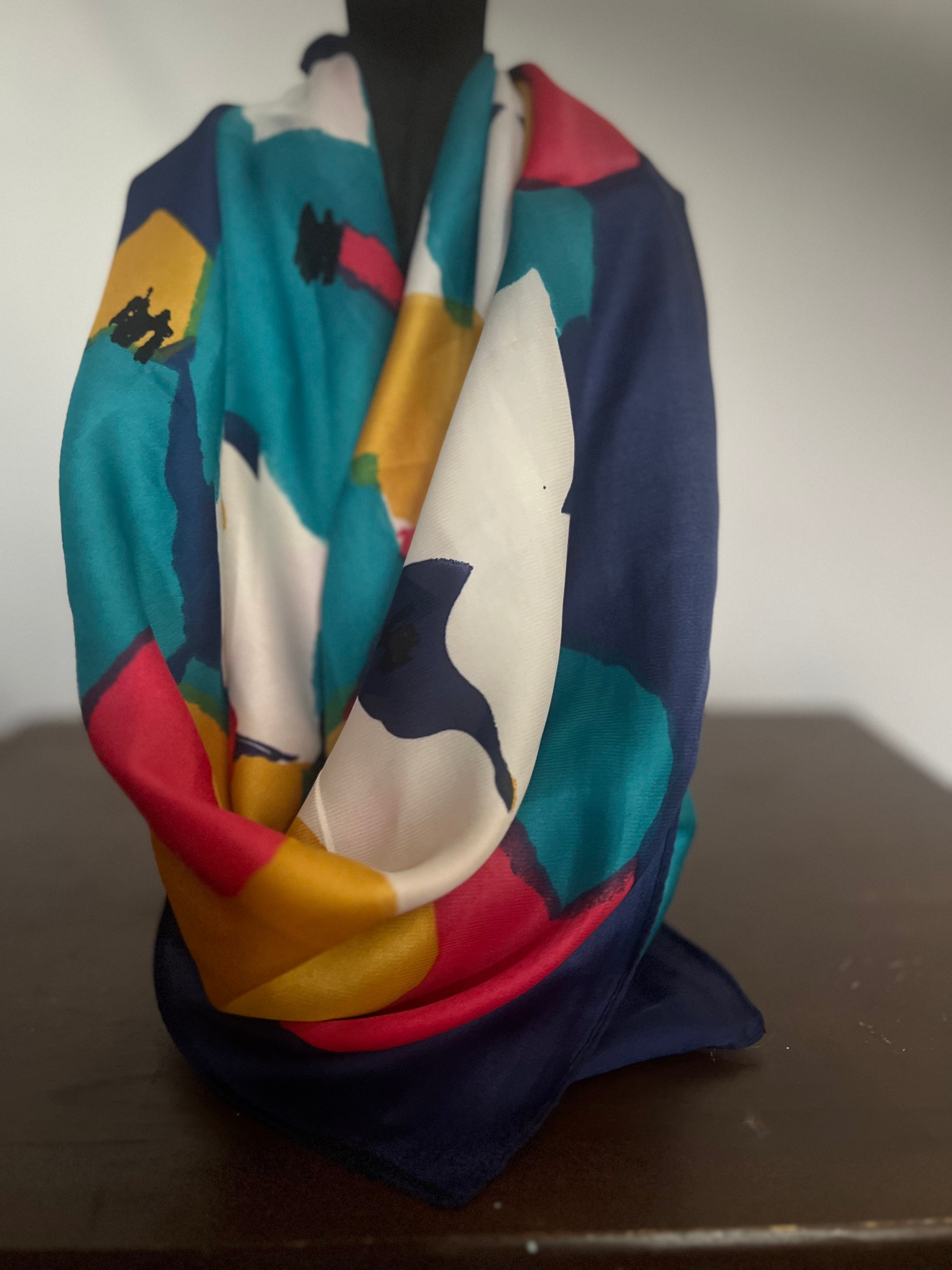 This colorful satin scarf feels great on the skin and will probably also go great with most of your outfits.