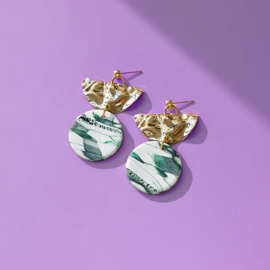 The Hammered Gold and Marble Statement Earrings